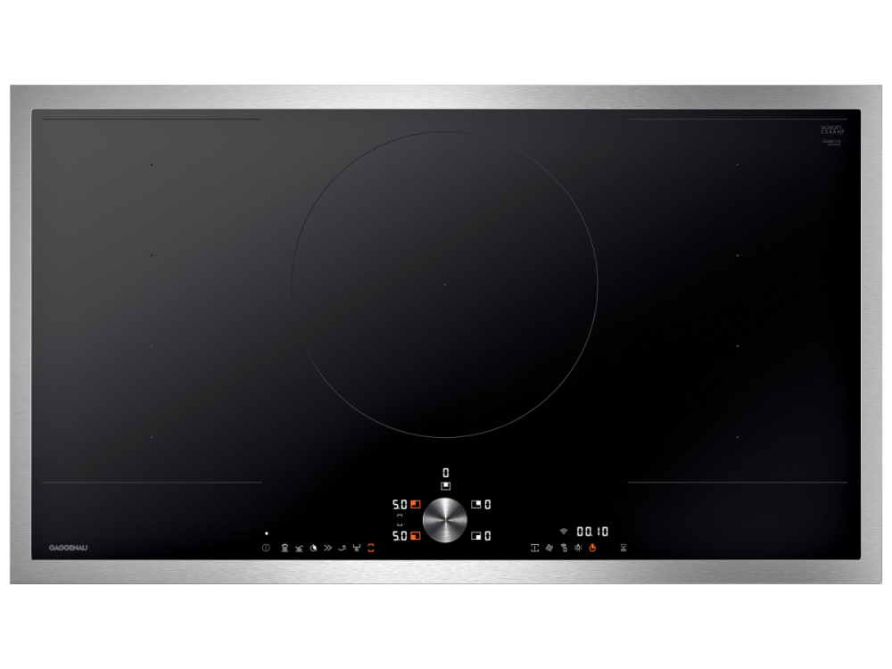 Индукционная варочная поверхность Gaggenau CI292 - это незаменимый прибор на любой кухне! Эта модель имеет 5 конфорок общей номинальной мощностью 11100 Вт. При этом 2 пары конфорок могут быть объединены в большую зону. В целях безопасности варочная панель имеет защиту от детей, автоотключение при перегреве, защиту при выкипании и индикаторы остаточного тепла.  При желании этот прибор можно установить заподлицо вровень со столешницей.