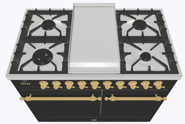 • Тип конфорок: 4 газовые конфорки, Dual конфорка, жарочная поверхность Fry Top