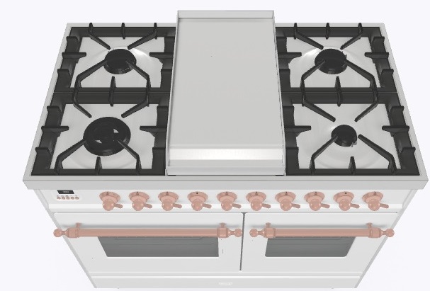 • Тип конфорок: 4 газовые конфорки, WOK конфорка, жарочная поверхность Fry Top