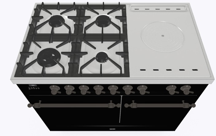 • Тип конфорок: 4 газовые конфорки, WOK конфорка, жарочная поверхность Coup de Feu