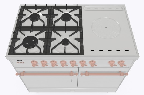 • Тип конфорок: 4 газовые конфорки, WOK конфорка, жарочная поверхность Coup de Feu