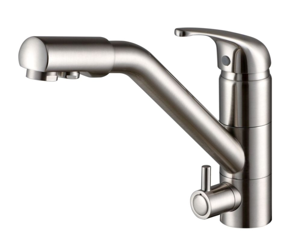 предусматривает поступление фильтрованной воды, которая не смешивается с водопроводной. Питьевая вода подается через отдельные трубку и аэратор, а для регулирования питьевой воды предусмотрена отдельная ручка.