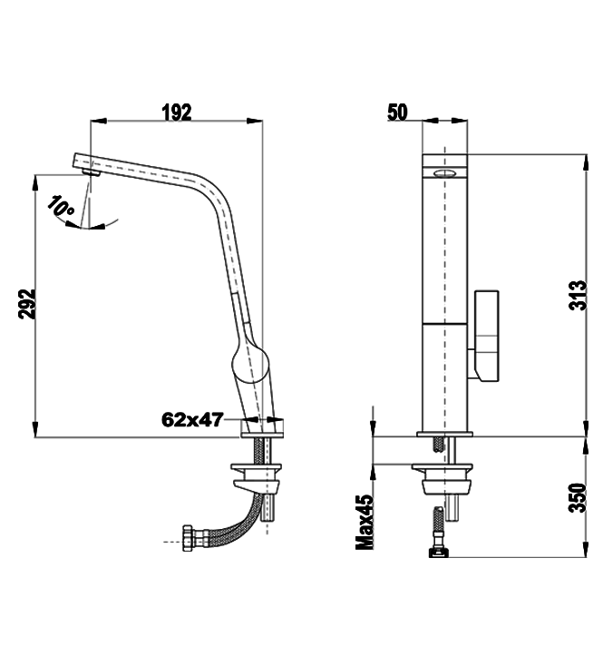 • Аэратор поворачивается на 10°