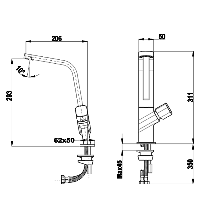 • Высота 293 мм /311 мм