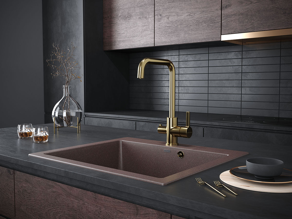 Высокий излив, вращающийся на 360 градусов, обеспечивает легкое мытьё и наполнение высокой посуды и ваз.