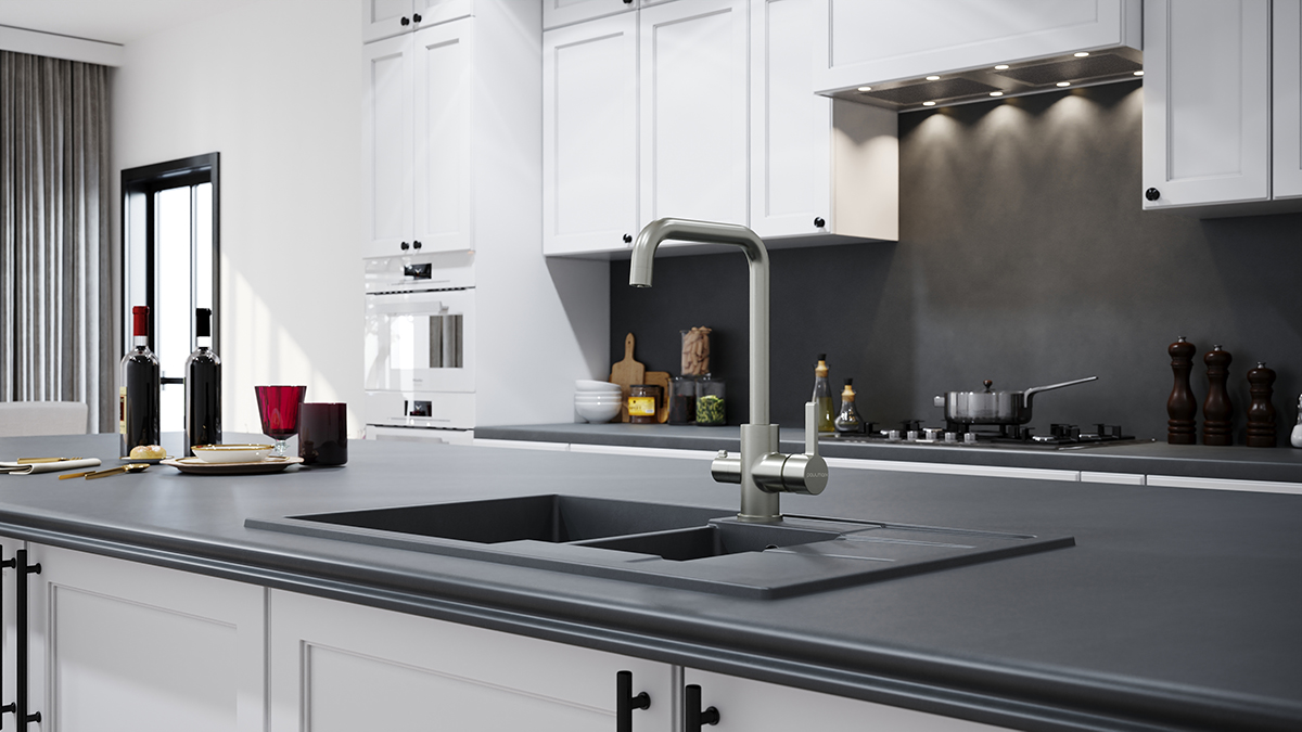 Высокий излив, вращающийся на 360 градусов, обеспечивает легкое мытьё и наполнение высокой посуды и ваз.