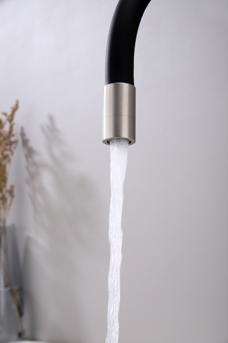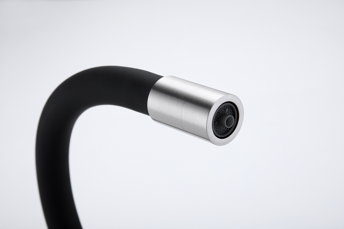 Высокий гибкий излив из силикона, вращающийся на 360 градусов, обеспечивает легкое мытьё и наполнение высокой посуды и ваз. Крепление излива с помощью магнитного держателя обеспечивает надёжную фиксацию.