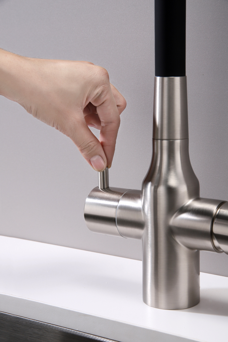 Смеситель для кухни SALIX c возможностью подключения системы фильтрации питьевой воды изготовлен из высококачественной латуни, которая отвечает высочайшим европейским стандартам качества, не содержит свинца, не разрушается со временем и безопасна для здоровья.