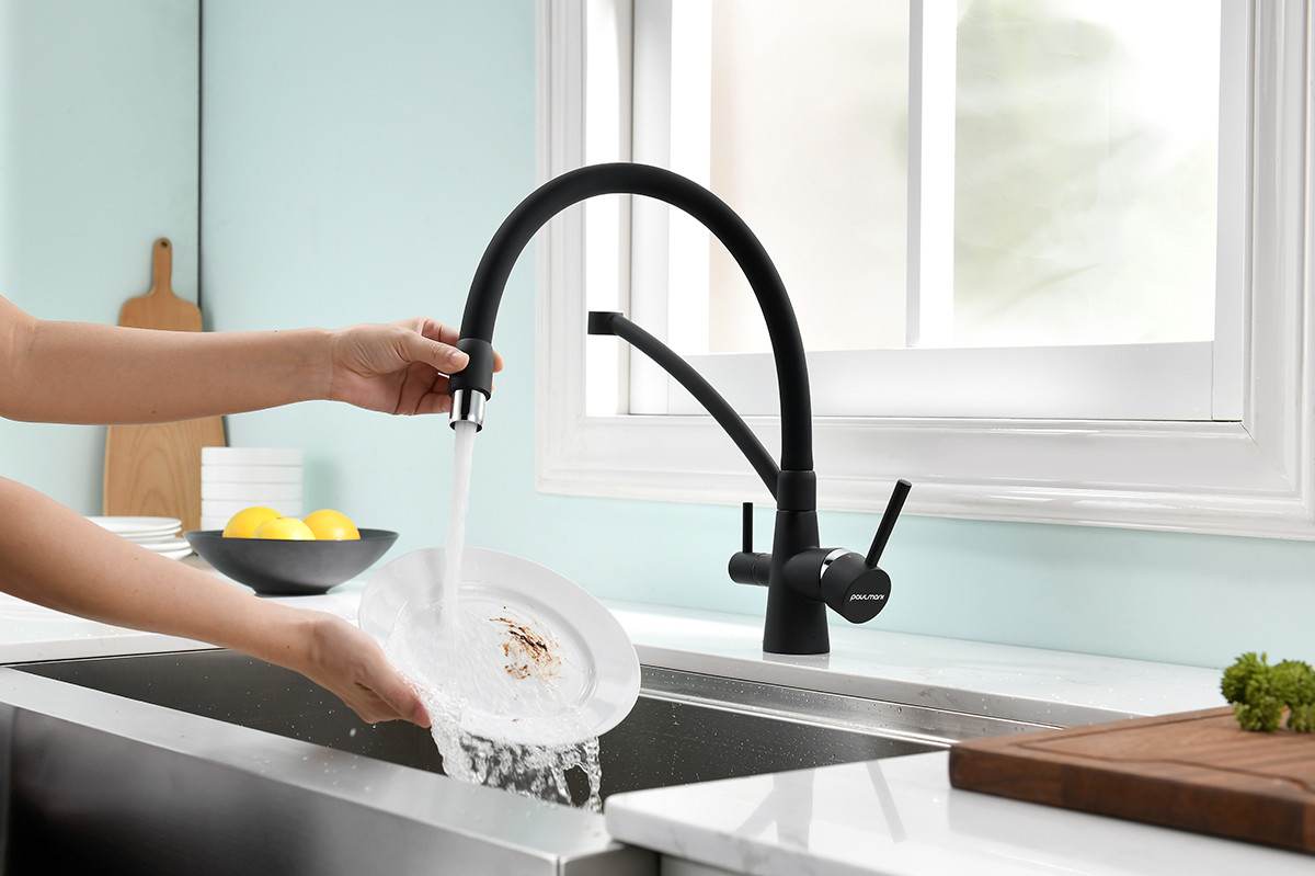 Гибкий излив из силикона с возможностью вращения на 360 градусов обеспечивает оптимальный диапазон движения и удобство использования.
